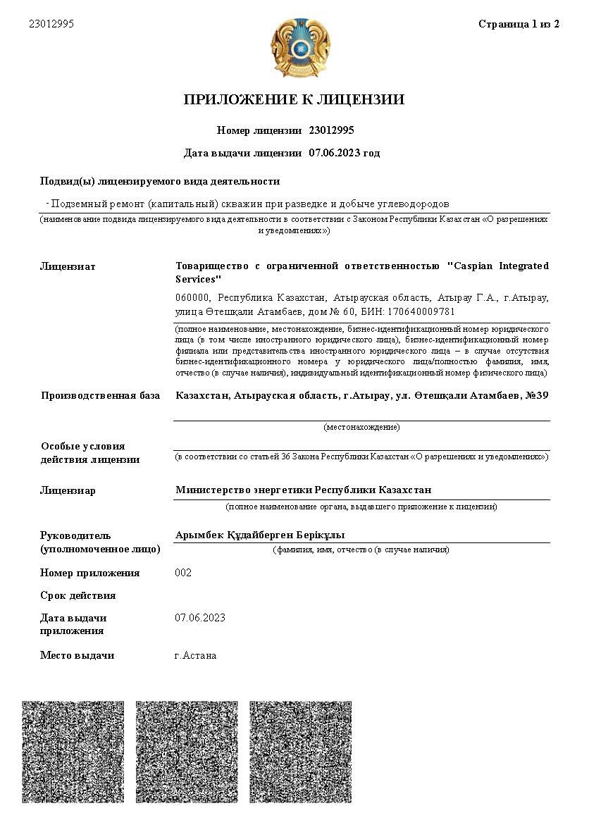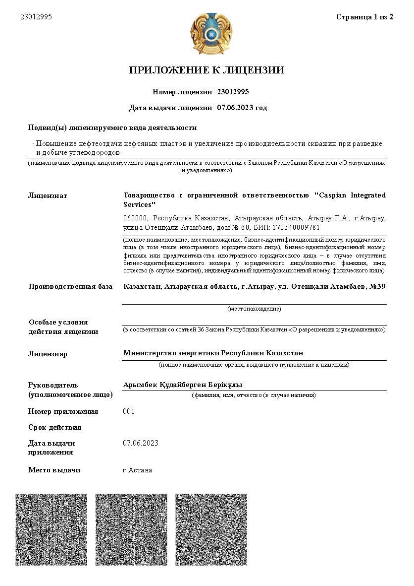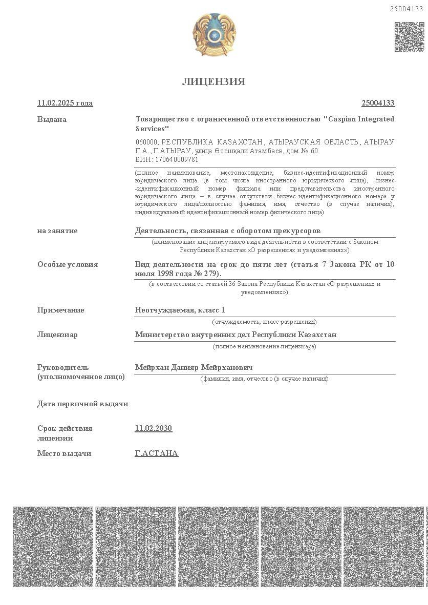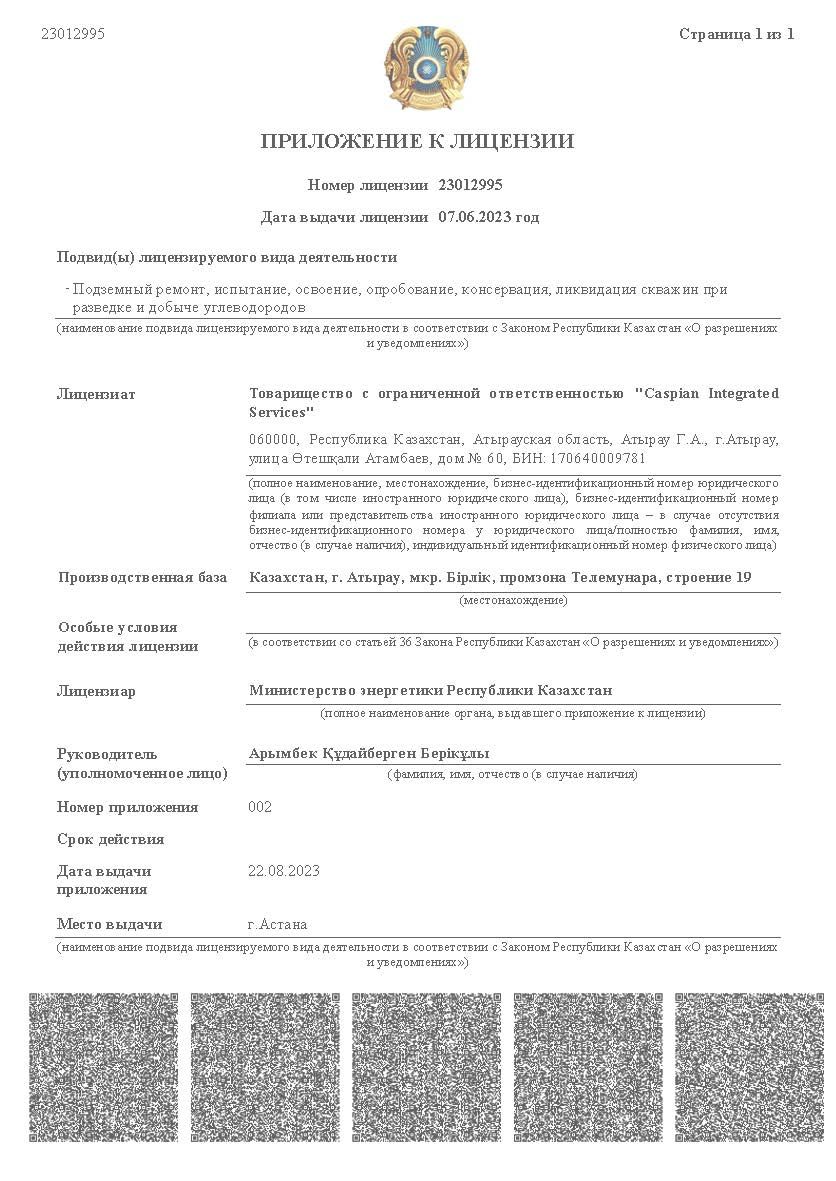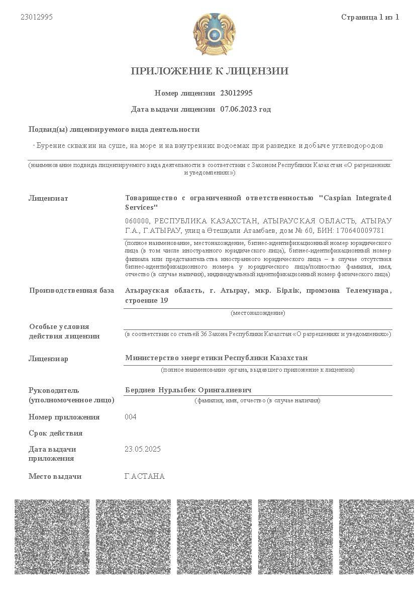 Головной офис и производственная база Компании располагаются в городе Атырау, Республика Казахстан.